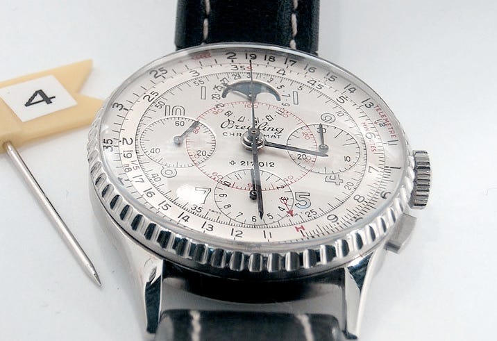 Between the wars, aircraft became faster and started flying longer distances. The slide rule bezel, pioneered by Breitling, transformed pilot watches into wrist-worn flight computers. This mechanical calculator enabled pilots to determine ground speed from time and distance, monitor fuel consumption rates, calculate climb and descent rates, and correct for wind direction.
